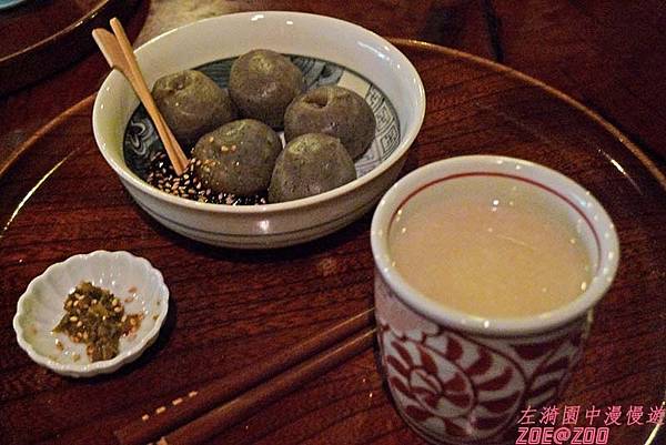 ↑甘酒,400日圓。既然來到甘酒茶屋,豈有不喝這已熱賣長達四個世紀的招牌食物呢!其實雖然這名為甘酒,卻是不含酒精的,完全是米麴釀造的,當中的甜味也是自然產生,並沒有添加任何糖。溫溫的不嗆口,非常的好喝!!不喝酒的人也可以試試。聽說這非常的營養,所以是江戶時代旅人的營養補給,甚至可以給小小孩當離乳食品(不知道適不適合台灣小孩就是了)。(本文中的餐點價格為2015年當時)