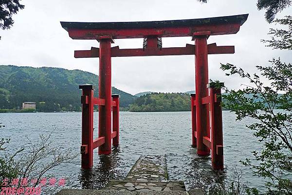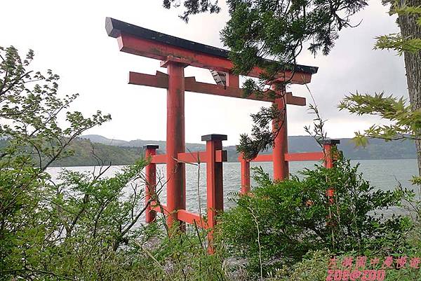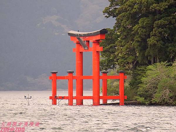 ↑這就是箱根神社的湖邊鳥居,是不是超美的啊!雖然沒有廣島嚴島神社的海上鳥居的壯麗,但浮在湖水上的鳥居還是很有意境。這鳥居設立於1952年,守候在這湖邊已經超過半世紀了呢。1964年當時為了紀念恭奉的神明進駐此地滿1200年以及慶祝東京奧運,被命名為「平和の鳥居」。