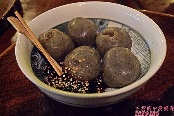 ↑みそおでん(味噌蒟蒻),一份五顆450日圓。個人非常喜愛日本的蒟蒻,日本的蒟蒻裡面大多有添加海草,會有細微的顆粒口感。我也很喜歡味噌田樂醬,鹹中微甜。這裡的蒟蒻超Q彈,田樂醬上還有芝麻,只是這道是沾醬取用,田樂醬沒法入味太深。