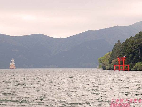 雖然來箱根旅遊才短短兩天一夜,但去的每個點都覺得很有趣,每個值得好好紀錄留念。左漪和左媽搭了空中纜車經過大涌谷、搭海盜船橫越蘆之湖,來到了箱根町港,這附近也很多景點,特別是搭船時就可看到的湖邊箱根神社鳥居,讓人想要一探究竟。