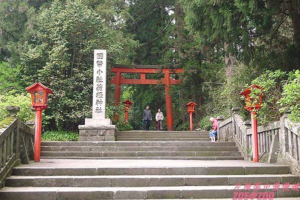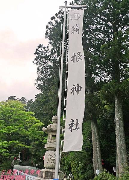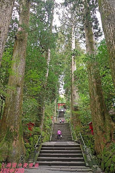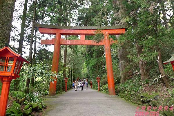 ↑箱根神社的參道入口,在綠林中紅色鳥居和路燈超顯眼。