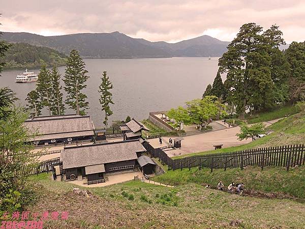 ↑來到箱根關所建議一定要爬階梯上來到遠見番所(望遠值班處),從這裡可以看到箱根關所整個區域,還能眺望蘆之湖以及遠處蒼山,風景超讚!