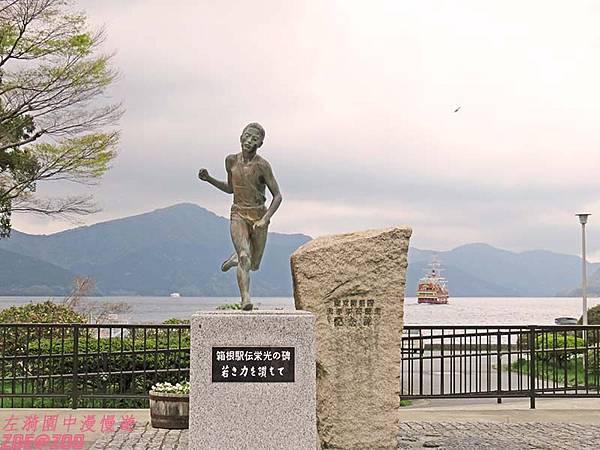 ↑嗯~~這個跟箱根關所無關,卻是箱根具代表性的一座雕刻,在海賊船箱根町港下船處附近,應該大部分的遊客下船前往箱根關所途中應該都會看到,這就是「箱根長跑接力賽之碑」。箱根長跑接力賽可是日本歷史悠久的接力馬拉松,賽程共兩日往返東京與箱根,僅限大學學生們以學校名義報名參加,每年比賽都在日本過年期間,電視還全程轉播,算是年度的盛事。從1920年創立至今已經舉行了91次,只有在二戰期間暫停了幾年。話說咱們台灣雖然現在很流行到世界各地去跑馬拉松,日本馬拉松更是大家的首選,但這個比賽因為礙於參加資格的限制,在台灣知名度應該很低就是了。