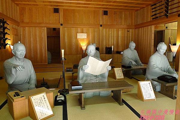 ↑箱根關所資料館,門口也站著兩個假人侍衛,遠看還蠻像真的。總之,箱根關所超多假人的,但做的還蠻正常的,應該不會嚇到小孩。而如果你對日本時代劇有些微的認識,或曾經是風靡一時宮崎葵「篤姬」的影迷,可能會覺得資料館內部的展品很有趣,這裡展示一些當時保留下來的物品和這關所的歷史介紹。個人覺得最精彩的是有一個大座模型重現了“幕府大名”上京時的浩大長龍隊伍,可以窺看當時這些地方領主們出巡時的派頭。