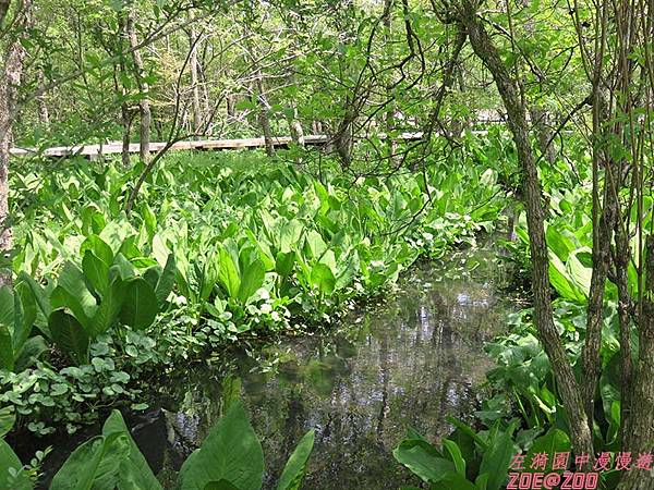 ↑水生植物種類真的很豐富,水芭蕉在春天會開清純的白色花朵,是這裡最著名的景色之一,可惜我們來的時間晚了許多,只剩綠油油的水芭蕉葉。雖然這個濕生花園是人工栽培維護的,但是不會讓人覺得很人工,總覺得這些植物就是原本野生在這裡的,就好像你是走在原始山原濕地裡。