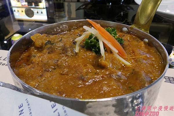↑香料羊肉咖哩,390元。配料很多,很實在!這裡咖哩選擇還蠻多元化的,也有素食咖哩,價格依餐點不同,大約都是300多元。