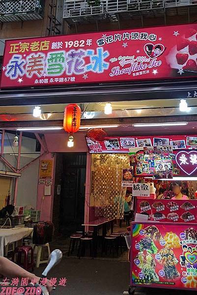 左漪周遭有很多土生土長的永和人,她們都很推薦自家附近的樂華夜市。其中一個朋友說來樂華夜市一定要吃雪花冰,她可是從小吃到大,N年前當她還是個花漾青春國中生時,下午下課後,就會和同學成群結黨來這裡吃碗雪花冰後再回家。她還提醒我別走錯間了,一定要認明「永美雪花冰」,因為隨著樂華夜市生意越做越好,看到正宗老店的生意強強滾,這幾年也有很多人想來分一杯羹,攤位風格和冰品都做的跟永美很像。