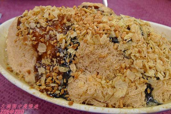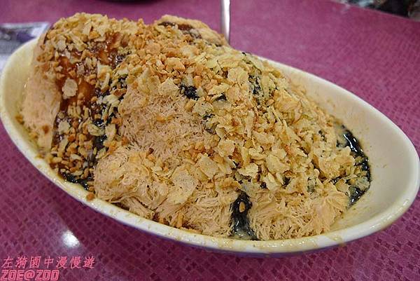 綿密的花生口味雪花冰上淋著花生醬和芝麻醬,還有碎花生妝點,集花生之大成,真的是花生味道濃郁到底。剛吃時覺得好香濃,好好吃喔~但不知道是不是一個人吃這一大碗攝取了過份糖量,還是花生本身吃多就容易引起口感舌燥,吃到最後有點小膩耶~(小聲)本文中的所有餐點價格均為2013年當時