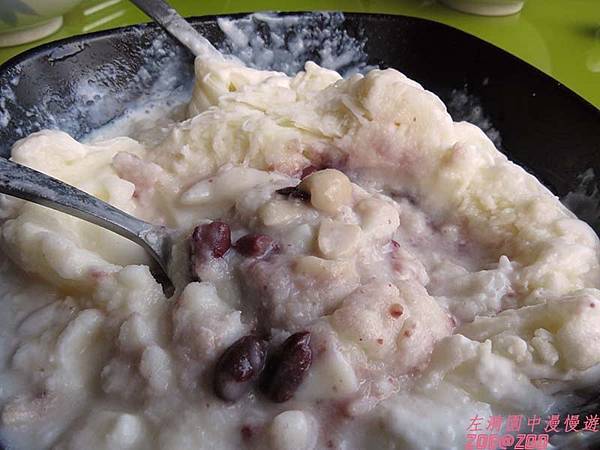 ↑吃到只剩三分之一時,才找到紅豆和花生,花生是煮得軟軟的那種還蠻大顆的。嗯...忍不住想起我喜愛的于記杏仁豆腐雪花冰,除了更濃一些的杏仁味和多一些的配料,最棒的是還能吃到杏仁碎粒,第一次吃到的時候大讚不已。