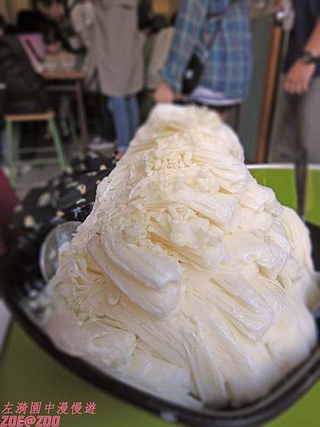 ↑杏仁豆腐冰,85元。看起來很綿密的杏仁雪花冰高高堆起,份量也還蠻多的。當天店裡的客人點這道的大多是兩人共食,我可是一個人就剷平了這座雪花冰山。在這雪花冰山裡隱藏著一塊杏仁豆腐和自選的兩種配料(紅豆和花生),但怕翻找出它們來時,山會崩塌,只能邊吃邊找它們的存在。