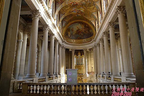 ↑從二樓拍到皇室小教堂的天花板壁畫與優雅美麗的柱形。