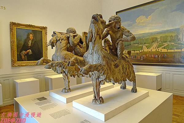 ↑一樓凡爾賽宮歷史廊內陳列著些許出自凡爾賽宮的雕刻複製品和畫作。歷史廊也是參觀凡爾賽宮的起點,可以了解到從路易十三世在此興建狩獵別宮起,歷經太陽王路易十四的興盛時期,狼狽不堪的路易十六王朝末期,到現在成為凡爾賽宮博物館的過程與轉變。前面兩張宮殿模型的照片也是在這裡拍的。