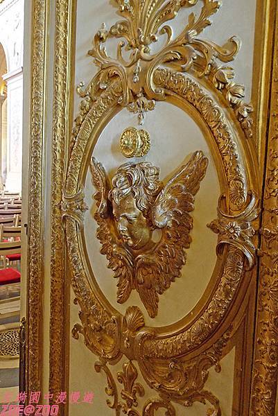 ↑位在宮殿一樓皇室小教堂門上有著金雕的天使頭,典型的巴洛克風格。