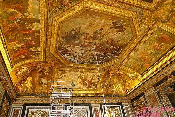 ↑也忘記這是哪個廳堂的天花板壁畫在整修中。看起來真是一個細膩繁複耗時的工作,也多虧這些人的工作,才能讓世人欣賞到這些經典鉅作。