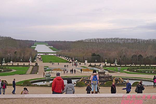 ↑凡爾賽宮的後花園,一望無際超級廣大的庭園。可以供皇室狩獵和各式休閒娛樂,此時運河兩旁的樹全都枯了。
