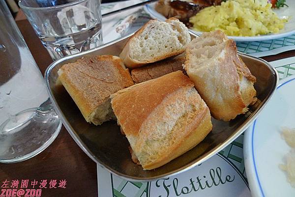 ↑法國的餐廳通常會先送法國麵包上桌,這裡的麵包是熱的。小茱說這真的很不常見,通常店家會提供的都是冷的,並不會刻意加熱。不知道是否是這餐廳主要做的是觀光客生意,想說外地人吃不慣冷麵包吧?
