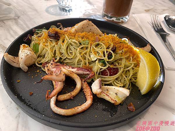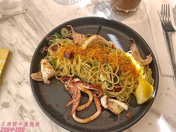 討海人的義大利麵,180元。聽名字就知道是一道海鮮為主的義大利,果然透抽份量十足,非常Q軟好嚼。
